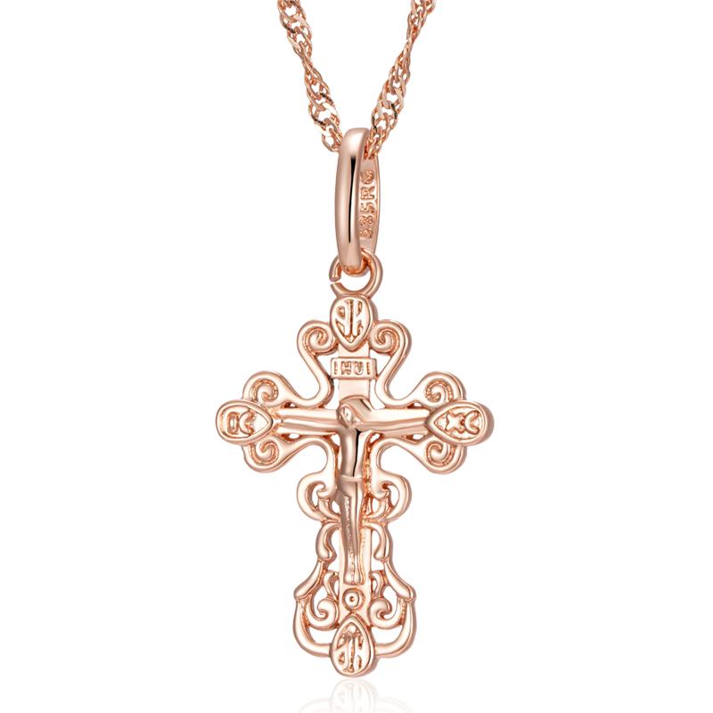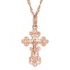 Luxury Rose Gold Color Cross Pendant Necklace For Women Men Orthodox Church Jesus Glossy Charm Daily Fine Jewelry
