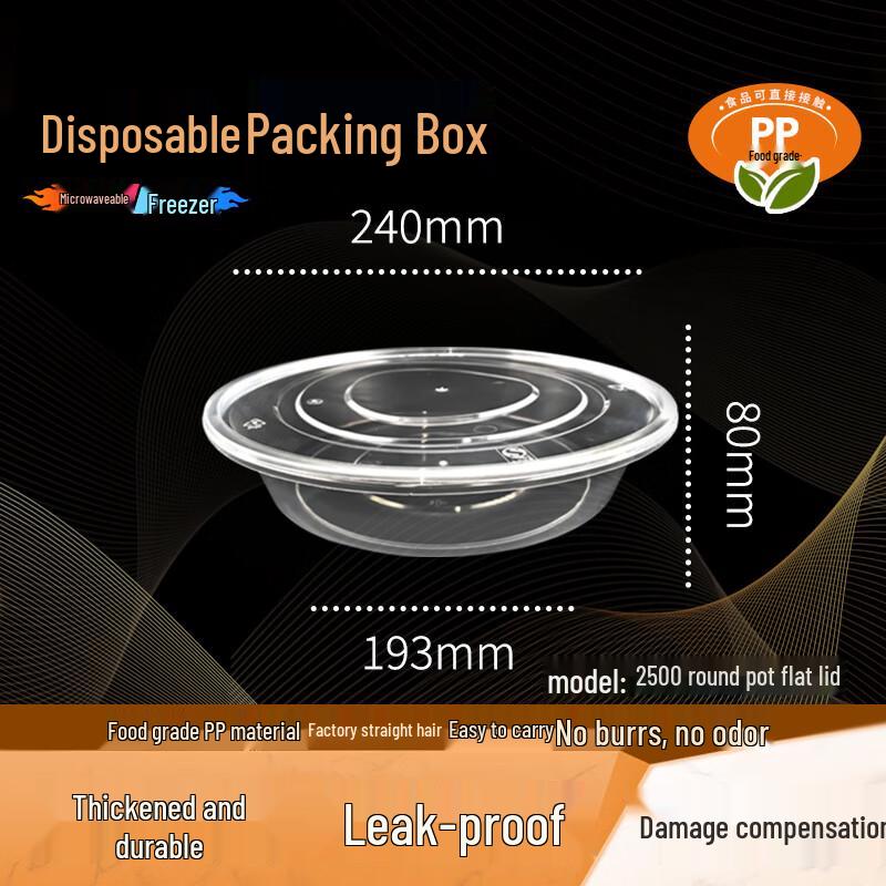 WEISHENG 2500ml Disposable Round Food Container with Flat Lid