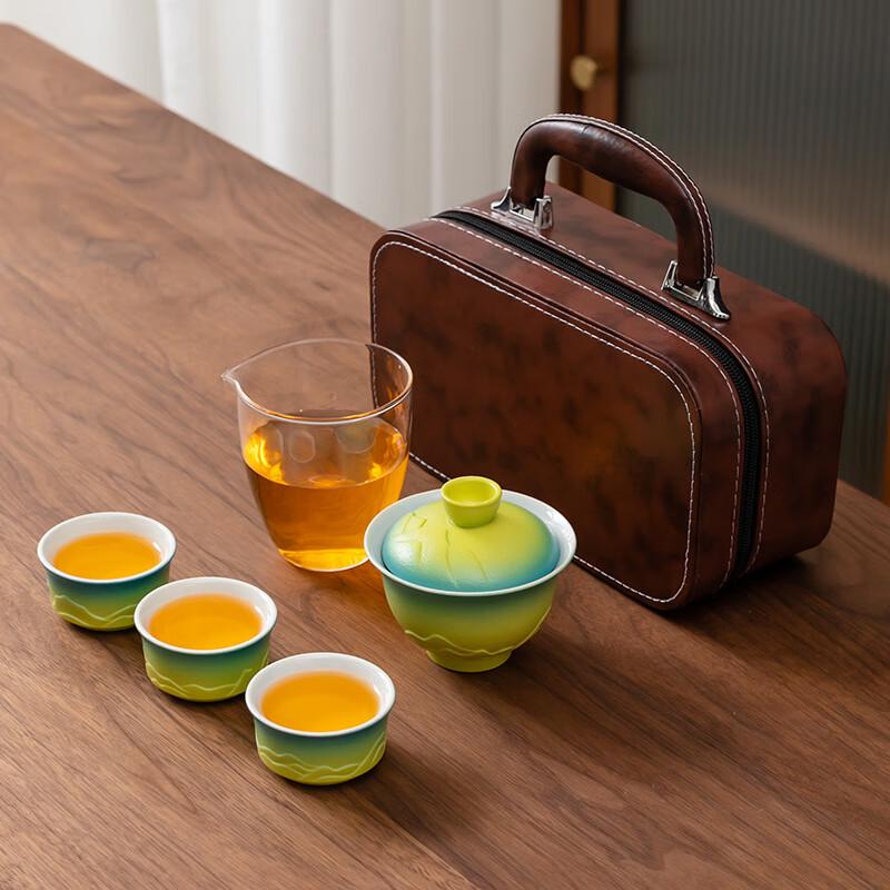 Portable Ceramic Travel Tea Set - Rivers & Mountains Green
