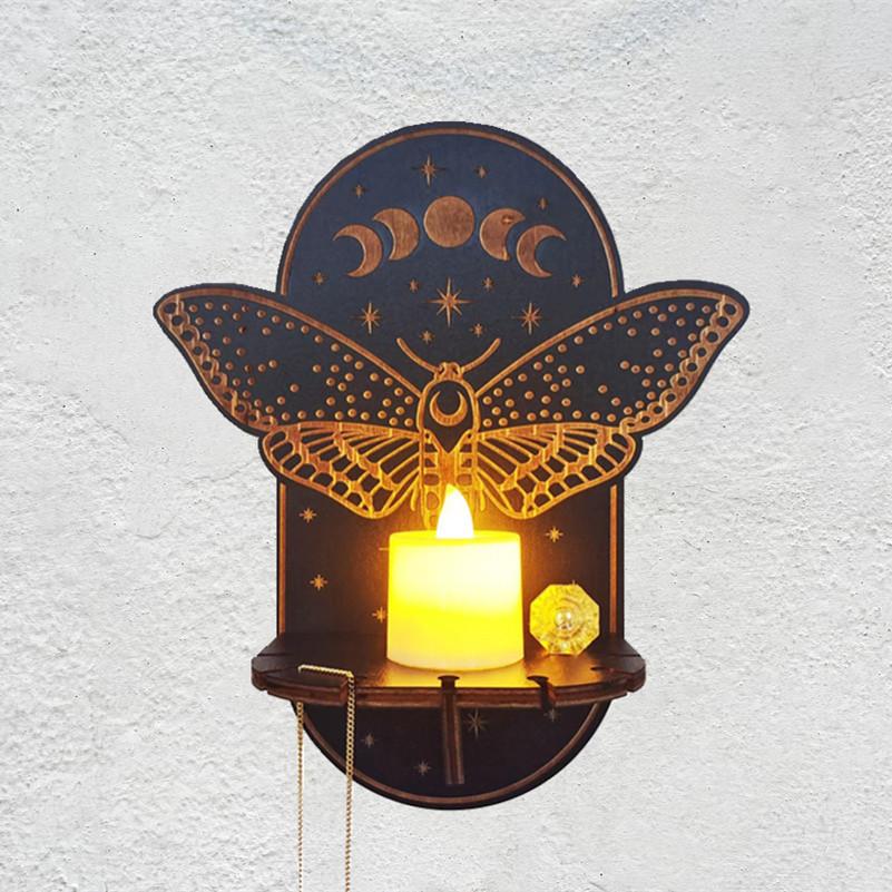 Wall Hanging Mounted Candlestick Holder Wooden Carving Craft Decor Owl Animals Foxes Cat Candle Display Crystal Storage Rack