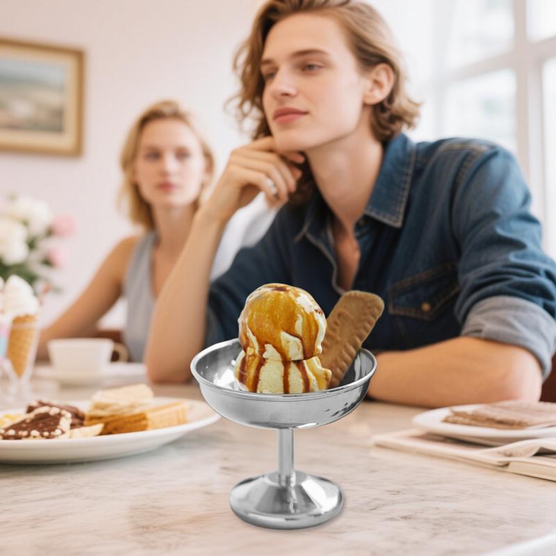 3.Not Easy to Break: Featuring a smooth and glossy surfaces made of 304 stainless steel, this ice cream cup ensures long-lasting use while maintaining safety and an attractive appearance for all occasions