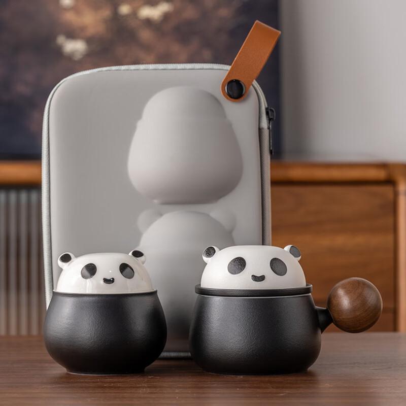 ZISIZ Black Walnut Panda Tea & Coffee Cup Set