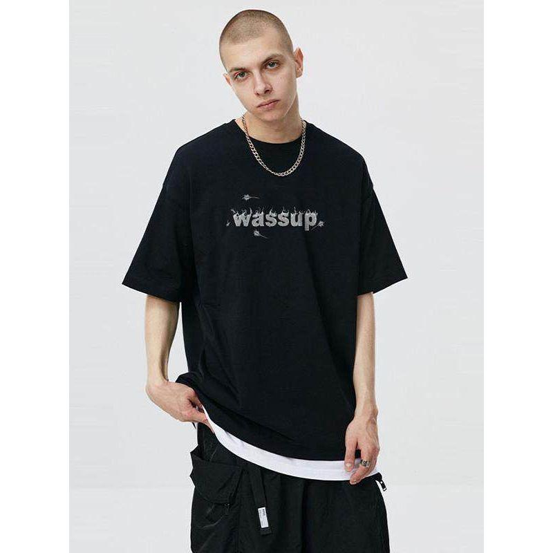 Wassup Heods Short-Sleeved T-Shirt for Men, Flame Trendy Brand, 2022 Summer Casual Top, Couple's National Trendy Brand Heavyweight