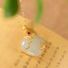 Original Ancient Gold Craft Inlaid Natural Hetian Jade Geometric Necklace Pendant Chinese Style Elegant Ladies Jewelry