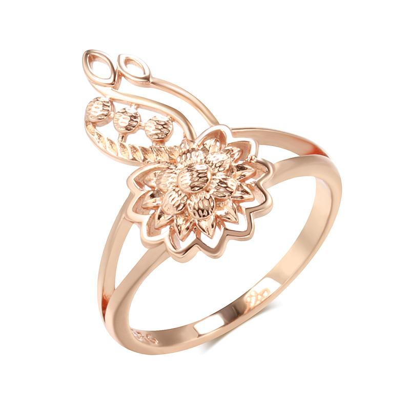 New Fashion Rose Gold Color Ring For Women Unusual Metal Sculpture Flower Ring Ethnic Bride Vintage Wedding Jewelry