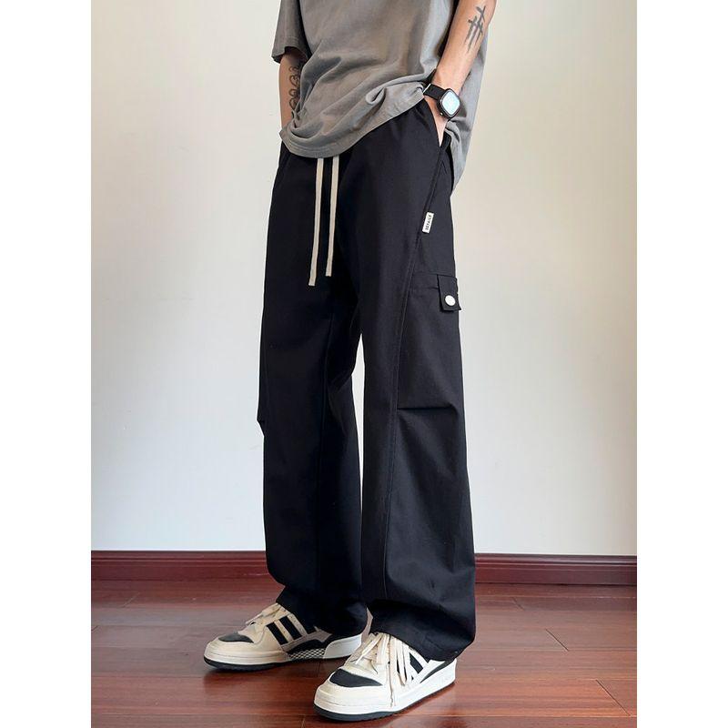 Wassup American-Style Straight-Leg Cargo Pants for Men, Spring and Autumn Vintage Wide-Leg Loose Scimitar Pants, Pure Cotton Casual Pants