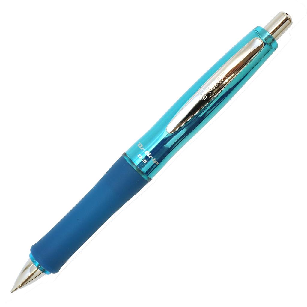 This limited-edition color is a celebration of the 100th anniversary of the "Dr. Grip" mechanical pencil, gentle on the neck, shoulders, and arms. The ergonomically designed grip allows for a comfortable grip, reducing strain on the shoulders and arms when writing. It features a flexible mechanism that advances the lead with a simple shake. Lead thickness: 0.3mm. Size: Height = 145mm, Width = 13mm, Thickness = 15mm. Product color: Light blue. Cover pattern: Typography.