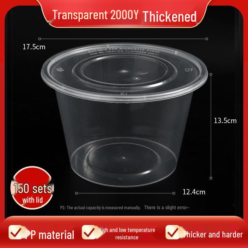 HANDUNYOU Thickened Disposable Rectangular Plastic Food Containers (150 Sets)