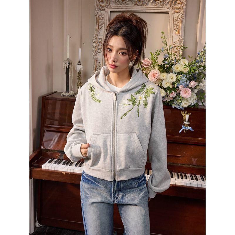 HACR's Harshandcruel New Chinese Style Florals Garland Embroidery Short Girls Hooded Cardigan Sweater