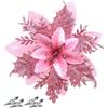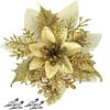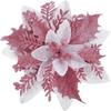 5/10pcs 14cm Glitter Artificial Flowers - Pink Red Gold Christmas Ornaments for Xmas Tree Home Decor