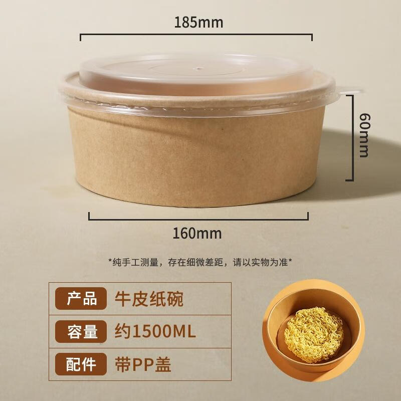 JingJingRS 1500ml Disposable Kraft Paper Takeout Bowl with Lid, 300-Pack
