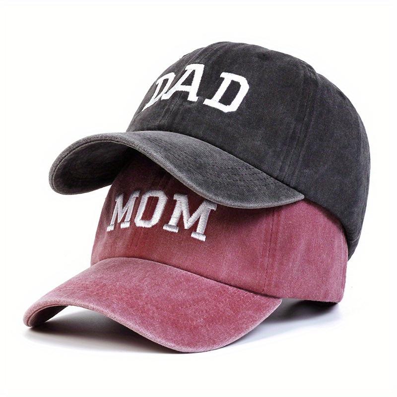 Șapcă de Baseball Spălată Brodată DAD MOM - Snapback Ajustabil, Pălărie de Cuplu Negru Maro pentru Călătorii în Aer Liber, Vacanță la Plajă, Primăvară & Vară, Pălărie de Plajă
