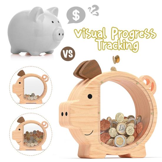 Ideal pentru băieți și fete, acest pușculiță din lemn este un cadou atent pentru zile de naștere, Crăciun, Ziua Copiilor, Anul Nou sau utilizare zilnică.. Nu numai că încurajează obiceiurile de economisire de la o vârstă fragedă, dar servește și ca o decorațiune fermecătoare pentru cameră.. Începeți astăzi să-i învățați copilului dumneavoastră valoarea economisirii banilor într-un mod practic și distractiv!
