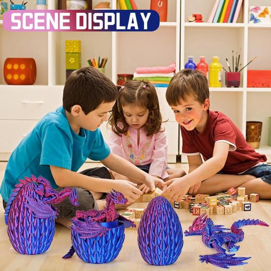 3D Printed Dragon Egg Figurine Movable Joints Flying Dragon Figure Fidget Toy Dragon Egg with Articulated Dragon Inside Decoration Ornament