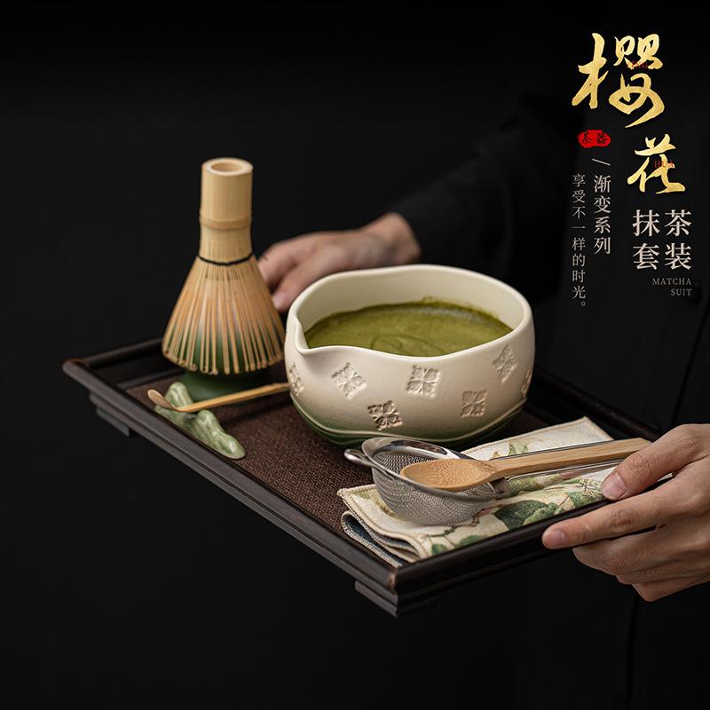 1/2/4/8 Pcs New Ceramic Matcha Bowl Sakura with Pouring Spout Matcha Whisk Holder Reusable Flower Matcha Making Kit Tea Lovers