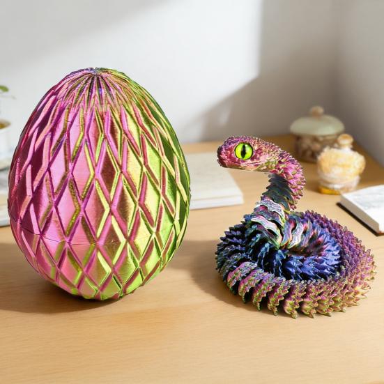 3D Printed Snake Egg Figurine Movable Joints Snake Figure Desk Fidget Toy Egg with Articulated Snake Inside Decoration Ornament