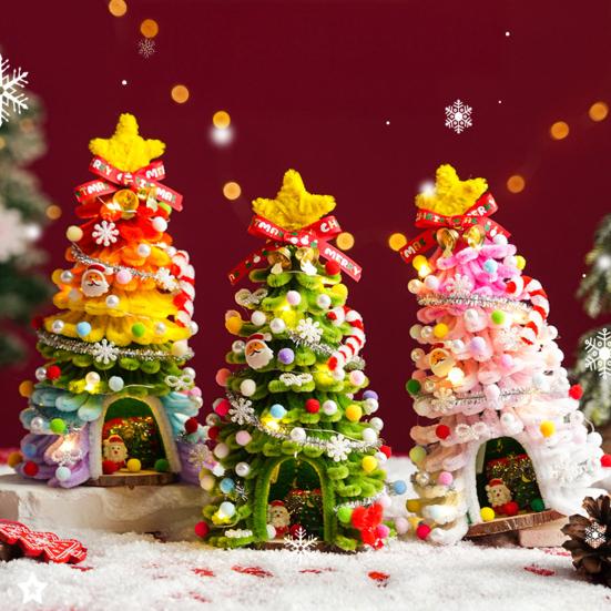 DIY Pipe Cleaners Christmas Tree Kit with String Light Twistable Plush Stick Xmas Tree Winter Bendable Fuzzy Stem Craft Kit