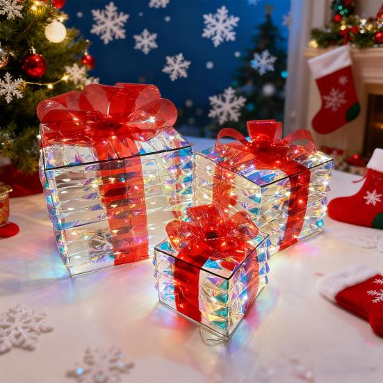 Îmbunătățiți decorul dumneavoastră de Crăciun cu acest set rafinat de cutii cadou de Crăciun.. Instalați fără efort aceste cutii de cadou, nu este necesar un asamblaj complex.. Pur și simplu conectați-le la alimentare și urmăriți-le cum se iluminează instantaneu. Aceste cutii completează diverse stiluri de decorare, perfecte pentru petreceri de sărbători sau aranjamente exterioare.