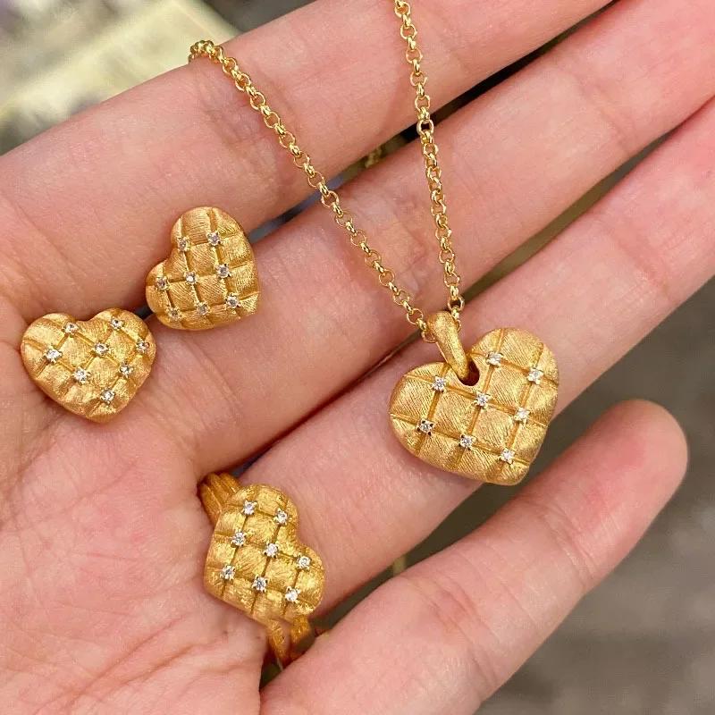 High Quality And Luxury Wire Drawing Heart-Shaped Necklaces Earrings Retro Art Laziness Wedding Accessory Jewelry Sets For Women