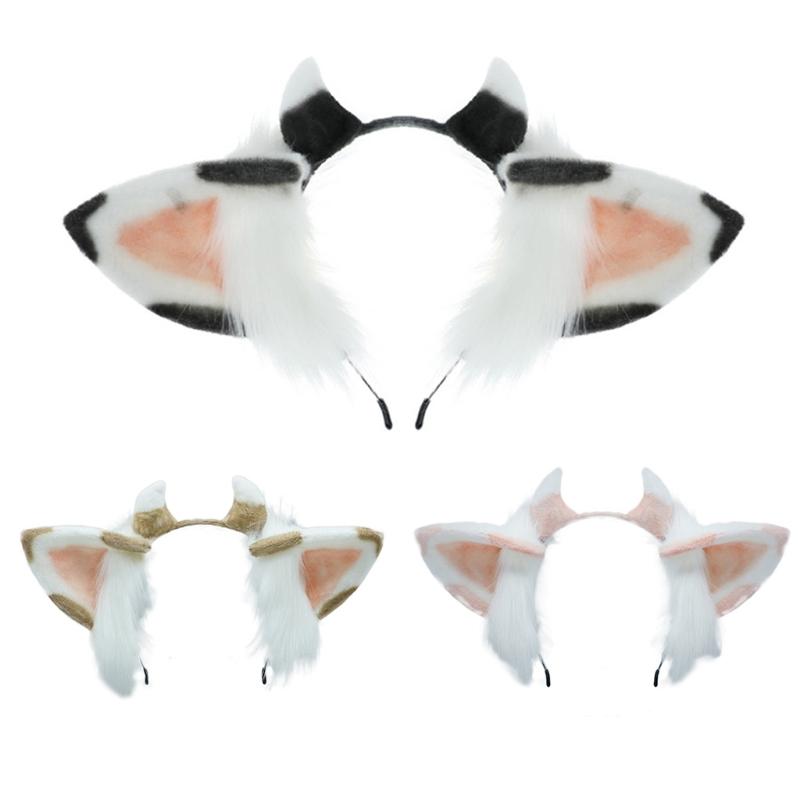 Plush Ears Hair Hoop Halloween Cow Ears Headband Furry Cartoon Animal Hairband Anime Fancy Dress Cosplay Headdress