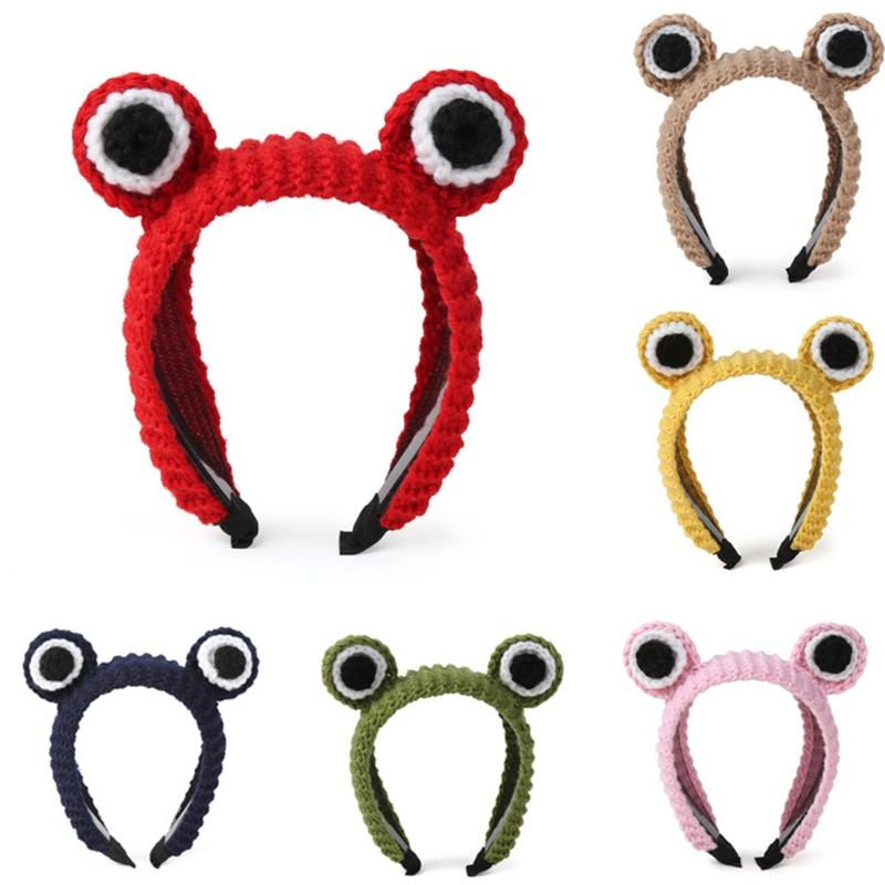 Knitted Animal for Frog Headwear Cartoon Big Eyes Hairband Cute Photo Props Fancy Dress Halloween Cosplay Accessories