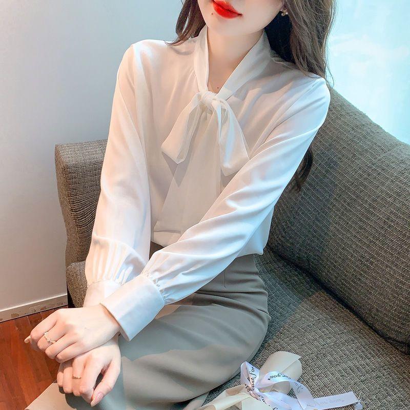 Autumn Chiffon Women's Clothes New Fashionable Solid Color Long-sleeved Shirt