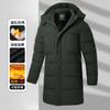 Men's Hooded Solid Color Long Sleeve Zipper Button Mid-length Fashion Casual Jacket Top
