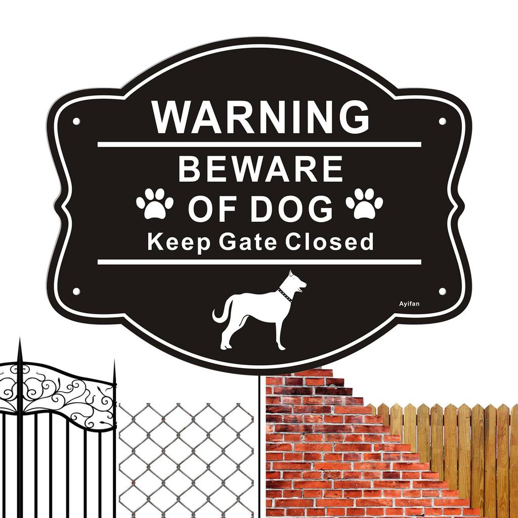 Caution Dog Warning Sign 10x8 Inch Aluminum Metal Anti-Rust Fence Dog Signs Gardening Supplies For Yard Patio Lawn Outside
