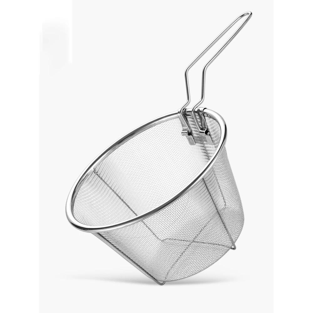 French Fries Basket Stainless Steel Fry Baskets With Handle Deep Fryer Strainer Blanching Basket Deep Fryer Skimmer For Kitche