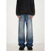 Kisko High Street American Style Washed Vintage Lightning Pattern Cleanfit Jeans Unisex Trendy Loose Straight Pants