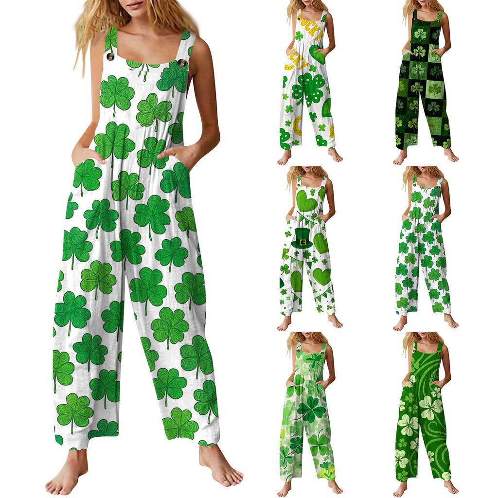 Bluză casual fără mâneci pentru femei. Salopetă imprimată de Ziua lui Patrick