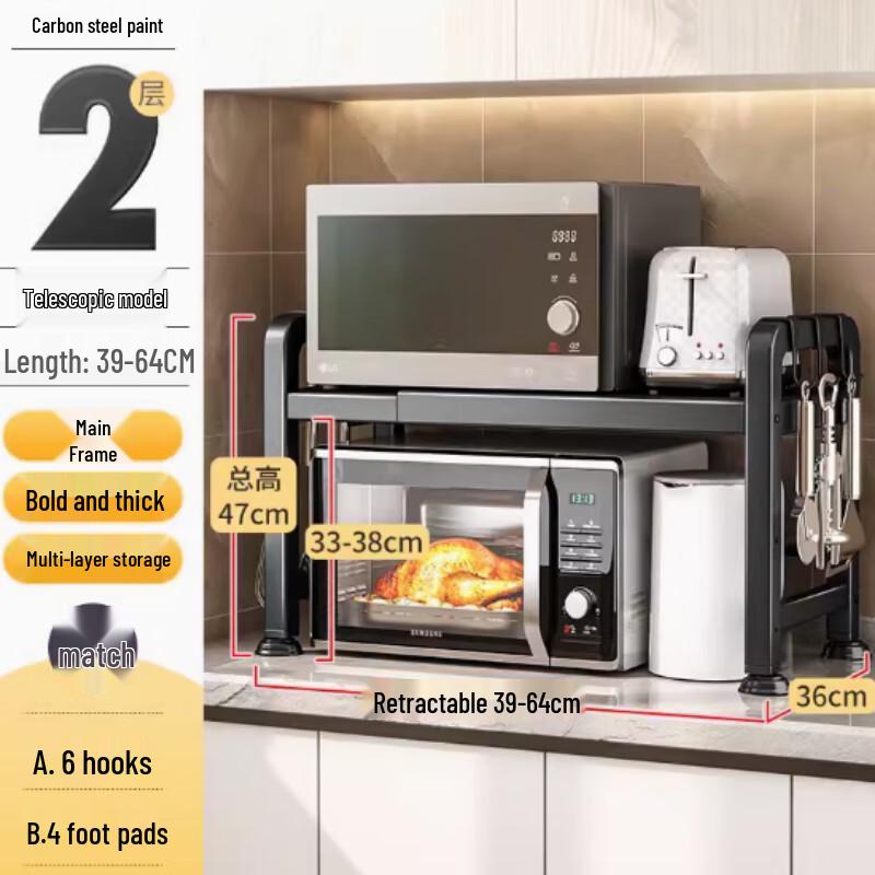 Retractable Carbon Steel Microwave Oven & Rice Cooker Storage Rack