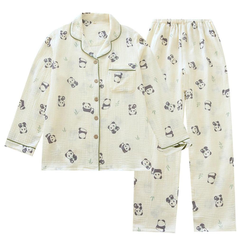 Niliv Long Sleeve Front Double Gauze Top and Bottom Soft Perfect for and Hospital Panda Size XL Women's Pajamas, Loungewear, Opening, Fabric, Set,