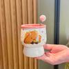 Birthday gift, girl holding a coffee cup, high-value ceramic latte cup, household drinking cup, and mug as a souvenir.