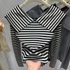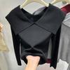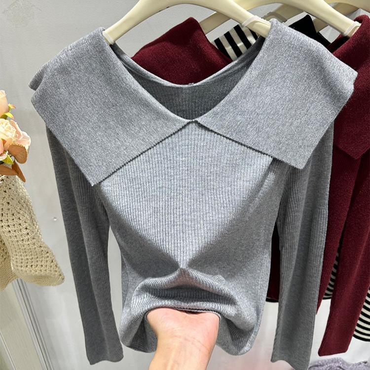 Core-spun yarn, lapel solid color knitted sweater Navy style autumn and winter thin long-sleeved sweater elegant