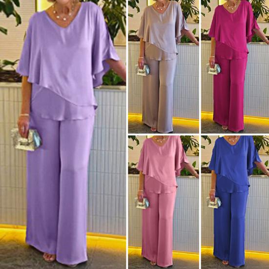 Elegant and Versatile 2-Piece Set: Elevate your wardrobe with this sophisticated 2-piece set, featuring a stylish top with bat sleeves, a V-neck, and an irregular hem paired with high-waisted wide-leg pants. Perfect for both casual outings and formal occasions.