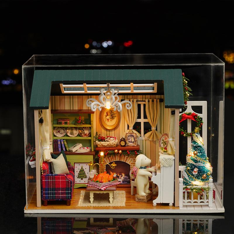 Miniature DIY Doll House Kit 3D Puzzle Assembly Building Model Toy Home Bedroom Decoration With Dust Cover Wooden Craf Dollhouse