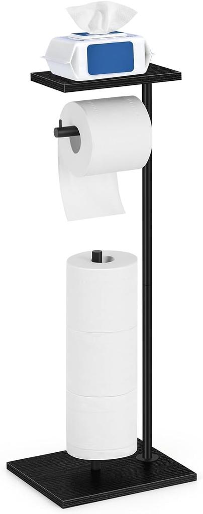 LIANTRAL Freestanding Toilet Paper Roll Dispenser, Toilet Paper Holder Stand with Top Storage Plate, Black Metal Frame, Black Patterned Plate