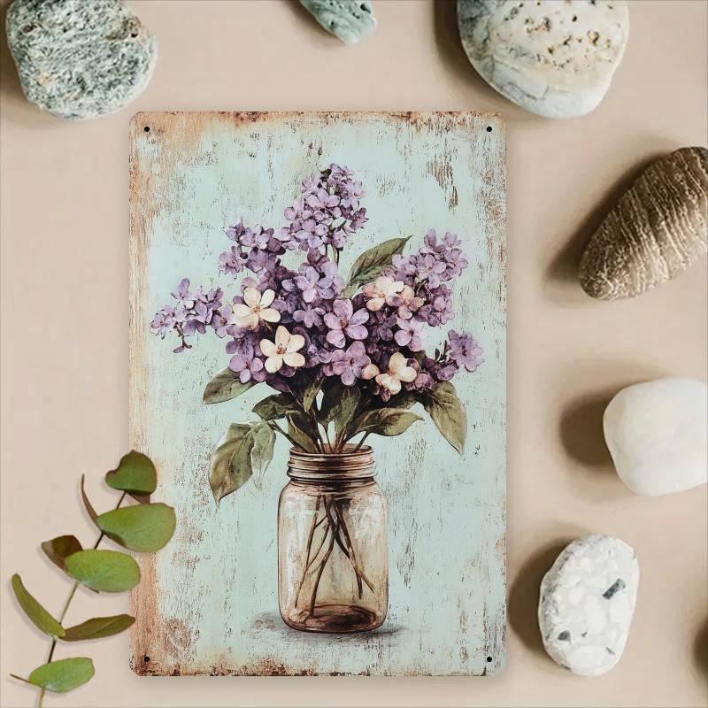 Room Decor 1pc Vintage Floral Iron Sign, Rustic Lilac and Daisy in Mason Jar Art, 8x12 Inch Wall Decor for Bedroom, Dining Room,