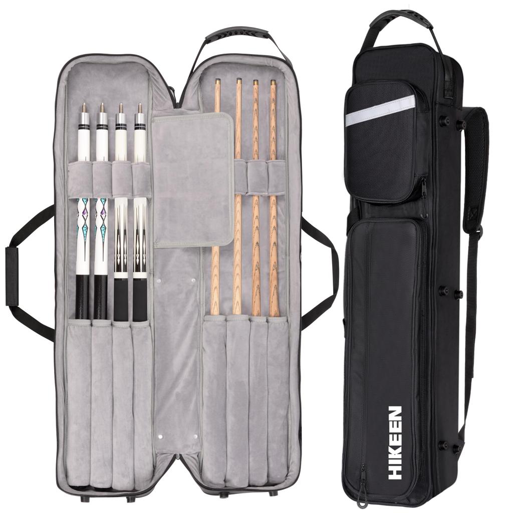Hikeen Hard Pool Cue Case, 4x4 Capacity, Soft Velvet Lining, Adjustable Shoulder Strap, Compatible with Billiard Accessories