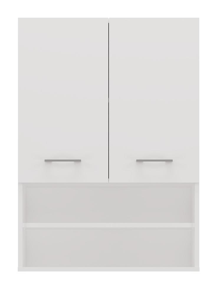 WALL-HUNG BATHROOM CABINET/SHELF OVER THE WASHING MACHINE MODEL: POLA MINI DK VERSION WITH SHORT DOORS COLOR: MATTE WHITE This modern wall-hung washing machine cabinet will meet the expectations of anyone who values practical solutions. Easier use of the free space above the washing machine The cabinet has 2 open shelves and 2 hidden behind the door Edges – finished with ABS plastic (characterized by high mechanical and chemical resistance) The furniture is made of 16 mm laminated board Minimalist design New type of fittings, smooth sides without End caps Polish manufacturer This wall-mounted bathroom cabinet is the perfect solution for small spaces to make even more of your bathroom. A spacious bathroom cabinet for towels, cleaning products, and other bathroom accessories.