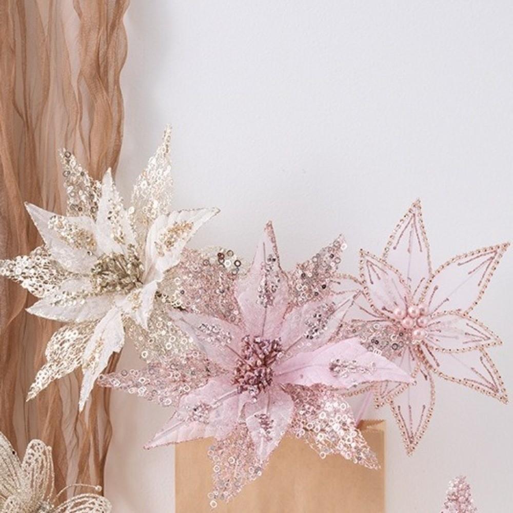 Large Glitter Christmas Poinsettia Flower Sequins Handmade Craft Xmas Tree Flower Simulated Realistic Christmas Tree Ornaments