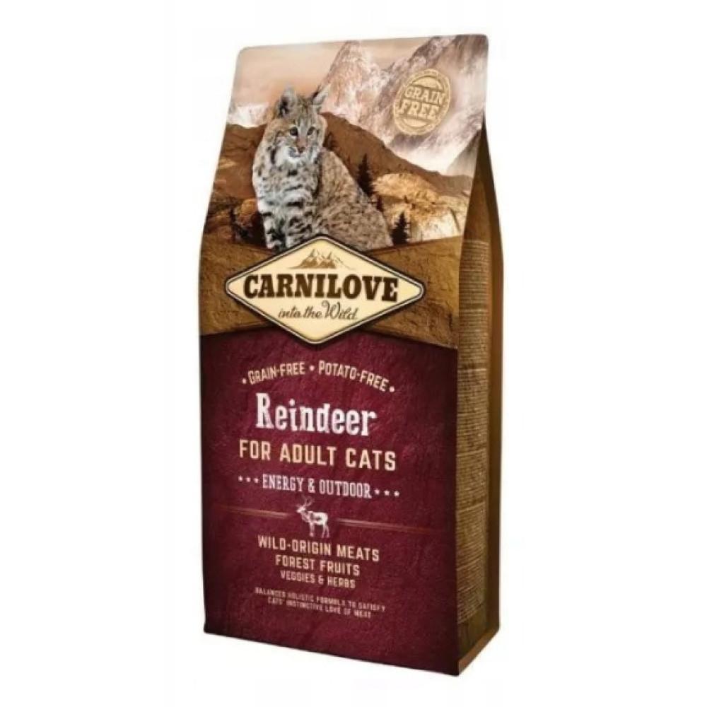 CARNILÓVE CAT REINDEER ENERGY&OUTDOOR Dry Cat Food 6kg CARNILÓVE CAT REINDEER ENERGY&OUTDOOR Dry Cat Food is an excellent choice for cat owners who lead an active outdoor lifestyle. This unique formula, based on reindeer meat, provides the essential energy your cat needs while supporting its endurance and health. The food's composition has been carefully developed to meet the specific nutritional needs of physically active cats.