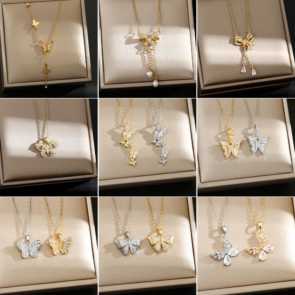 Korean Butterfly Tassel Luxury Diamond Titanium Steel Necklace - Women's Versatile Clavicle Jewelry
