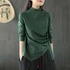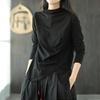 Literary Retro T-shirt for Women, Small Turtleneck, Irregular Pleated Bottoming Shirt, Versatile Temperament, Slimming Top