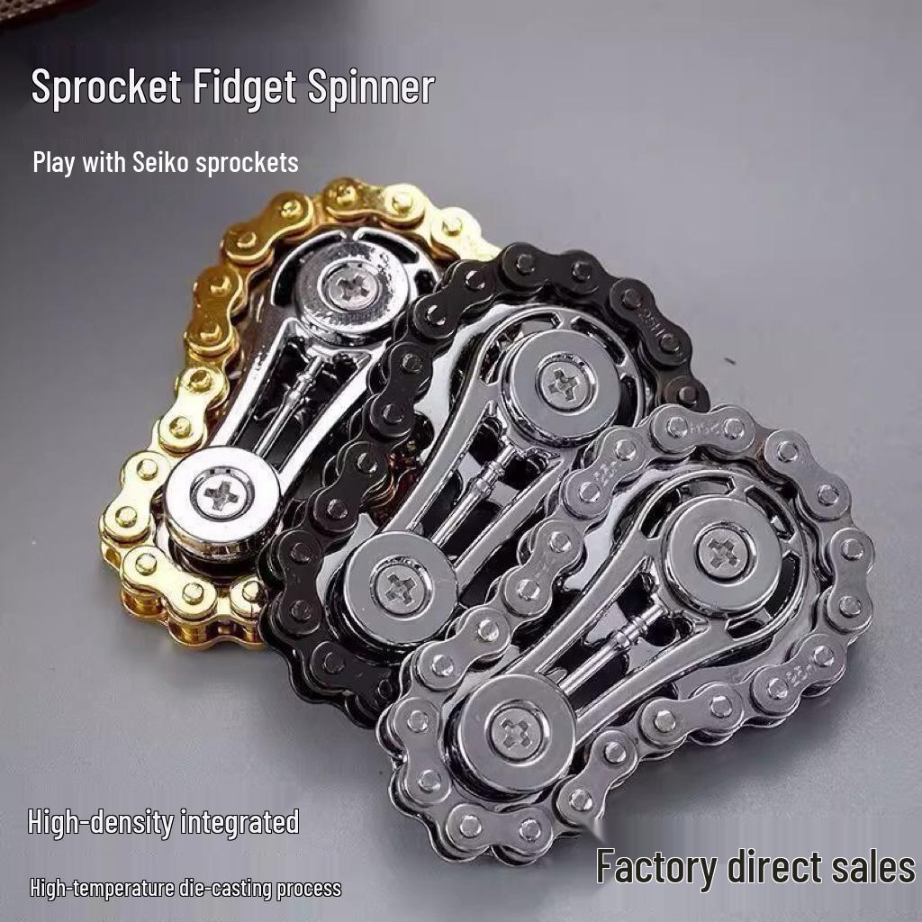 Finger Chain Fidget Spinner: Mechanical Metal Gear Linkage Stress Reliever