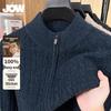 JOW Men's Heavyweight 100% Wool Jacquard Stand Collar Cardigan