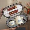 High-end Dehua mutton fat jade gradient blue kung fu tea set wisteria flower set new Chinese portable tea utensil enterprise