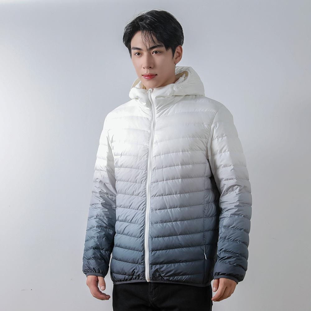 Men's fleece light down jacket men's hooded hooded winter coat gradual change color men's clothing
