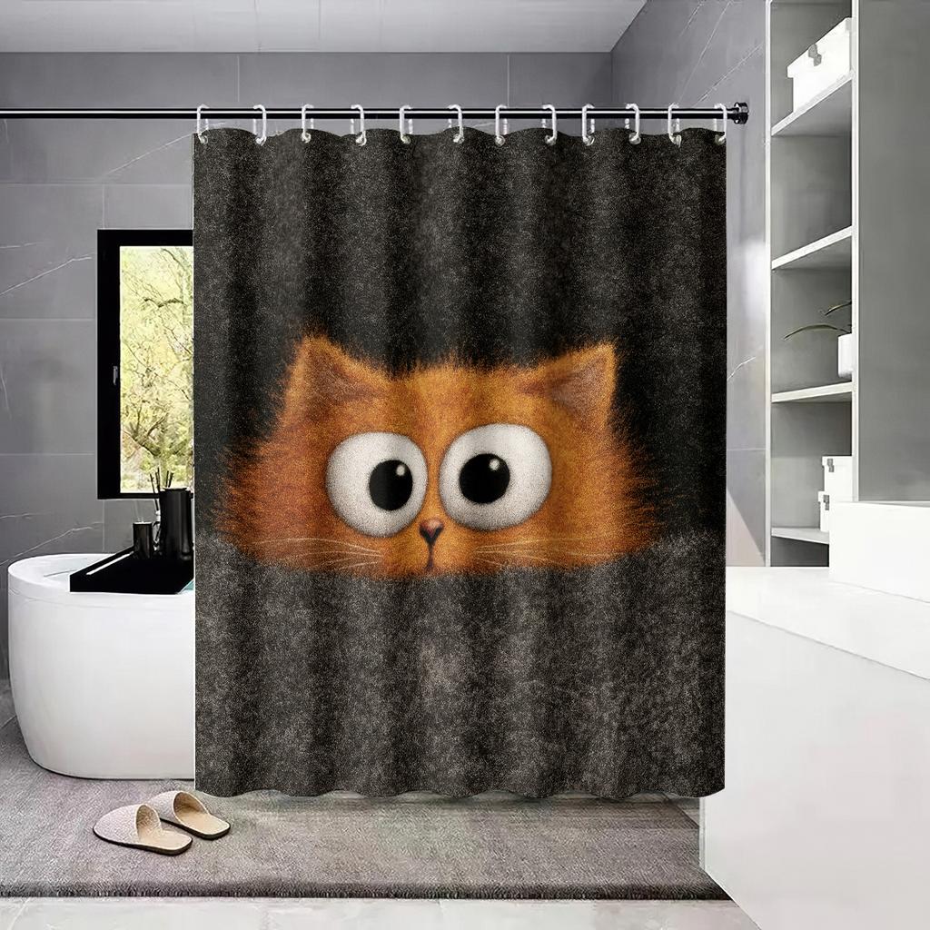 1pc Cute Cat Printed Waterproof Shower Curtain Partition Privacy Hanging Curtain with 12 Hooks Multiple Sizes